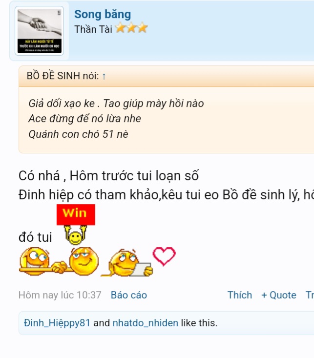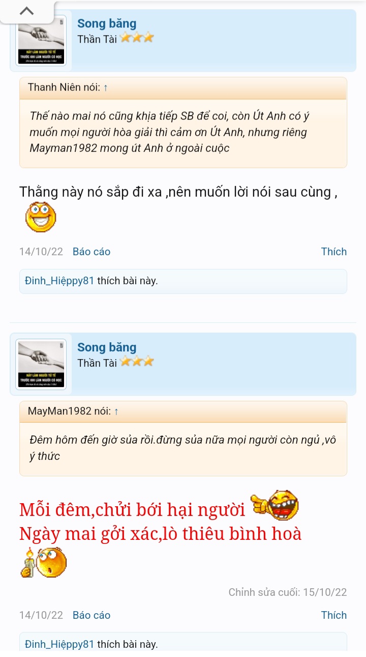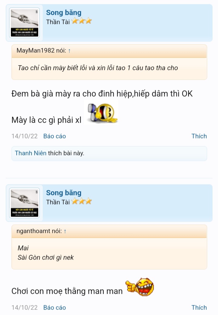 Con @Song băng úp đạo lý. Úp phật .úp kinh. Úp toàn điều hay lẽ đúng Mở miệng chửi bậy thúi quắc thúi ình Trời đánh thánh dật có ngày con ơi. Giờ nó có tên mới là băng huyết