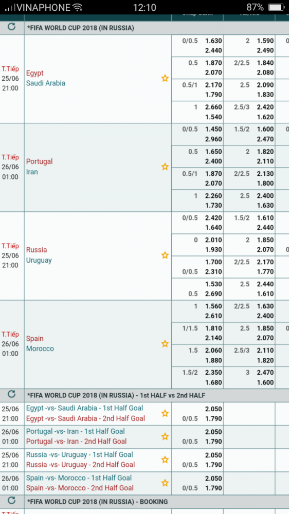 1 cặp thục lực quá chênh lệch giữa Tây và Ma rốc đã bị loại- câu hỏi trận này là Tây ban nha ăn bao nhiu bàn mà thôi nhưng cũng rất khó để chọn Odds nào và TX bao nhiu