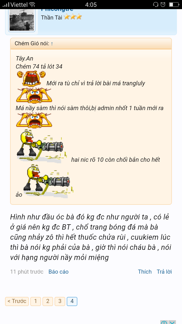 Người này chắc cũng thuộc loại chó hay lợn mới nói dc những lời như thế Thật thấp hèn, nói thật còn thua con chó nhà tao. Keke Chắc là cổ hơi thấp và họng nó bé quá Thích thì vào chém gió cho vui